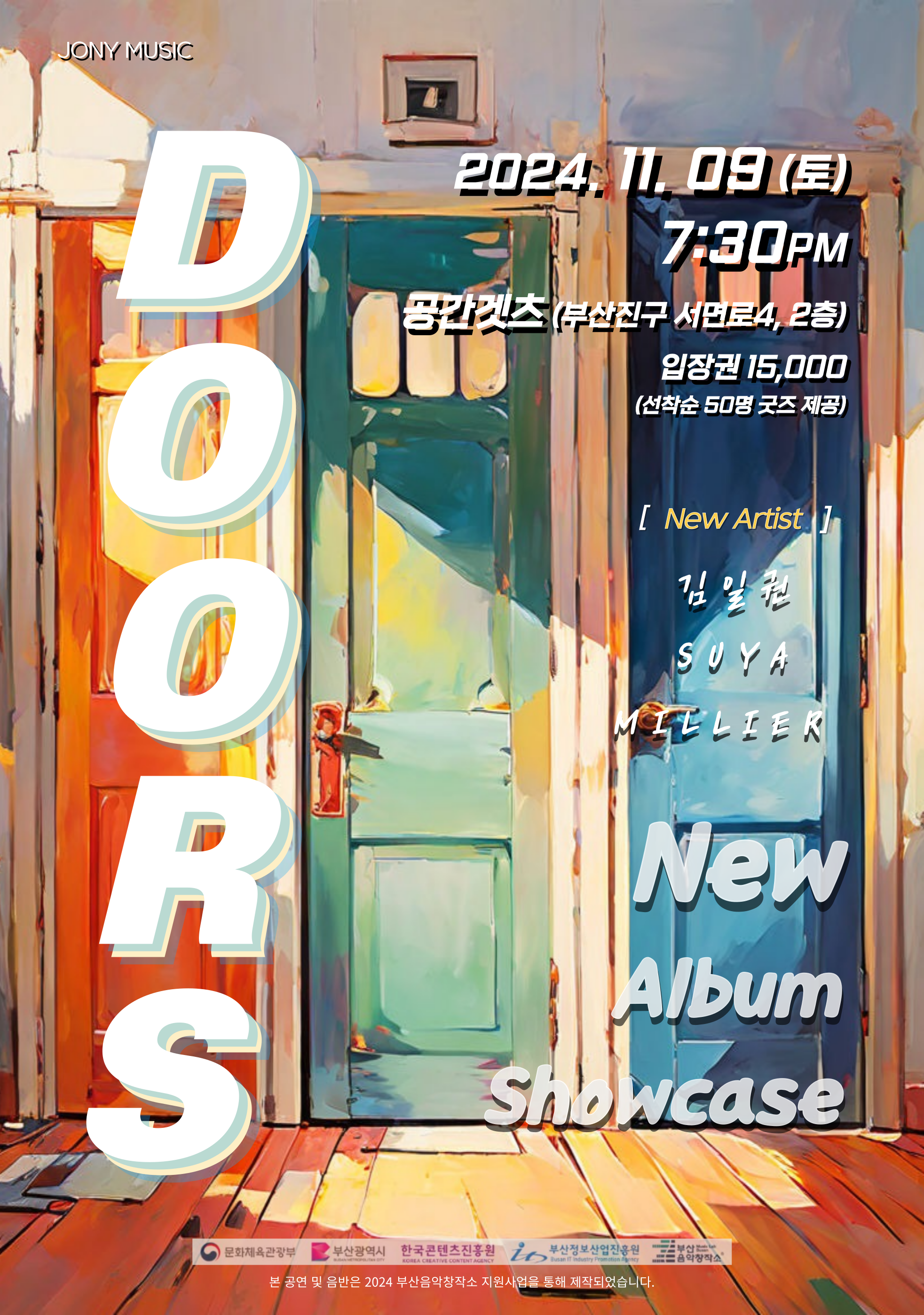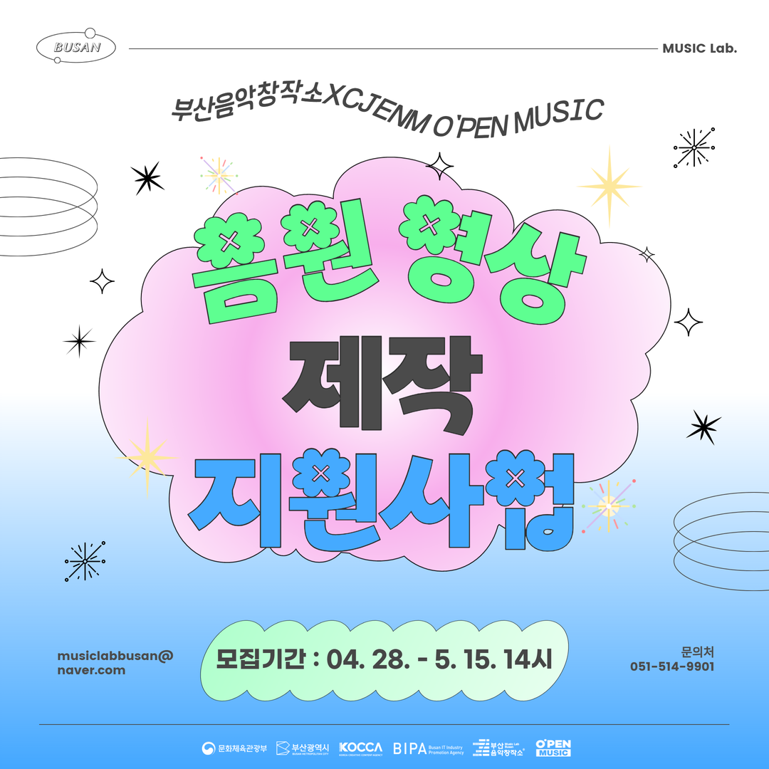 부산 음악창작소(이하 “음악창작소”라 한다) 홈페이지에서 제공하는 모든 콘텐츠는 저작권법에 따라 보호받는 저작물로써, 별도의 저작권 표시 또는 다른 출처를 명시한 경우를 제외하고는 원칙적으로 음악창작소에 저작권이 있습니다.